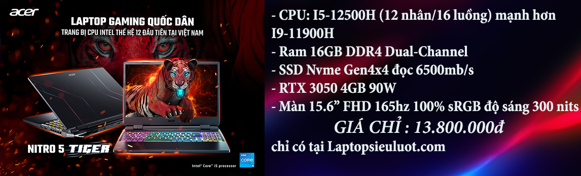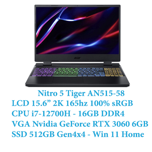 NITRO 5 TIGER 2022 AN515-58 (I7-12700H/16GB RAM/512GB SSD/RTX 3060 6GB/15.6” 2K 165hz 100% sRGB)